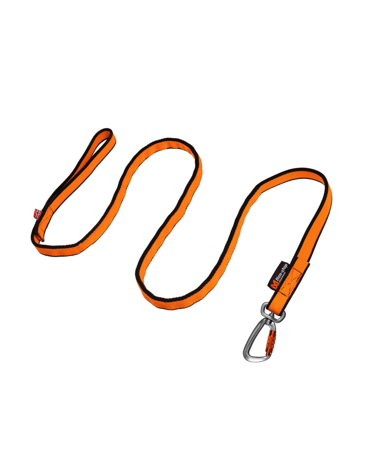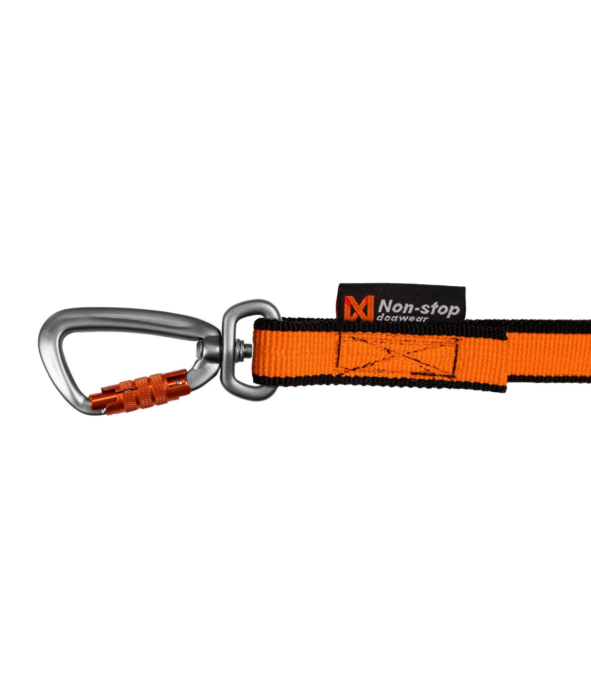Bungee leash festes til selen til hunden din med en vridbar karabinkrok, som er det tryggeste alternativet. Karabinkroken låser seg selv, og sørger for at hunden din ikke kommer seg løs.