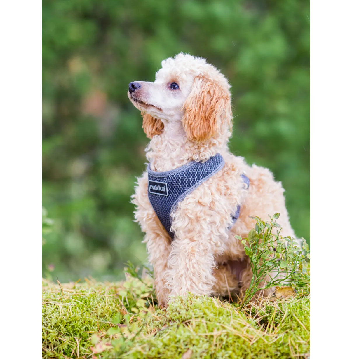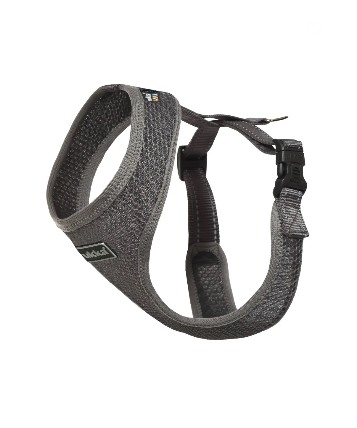 En ergonomisk og pustende sele som tilpasser seg hundens bevegelser. Comfort Air Harness er laget av en ny type pustende materiale som tørker raskt. Selen er et perfekt valg for vannleking og turgåing i våte værforhold siden den forblir lett selv når den utsettes for vann. Materialet er lett å holde rent, og den melerte fargen sørger for at flekker ikke stikker like mye ut. Selen er enkel å ta på og justere på brystet til riktig størrelse. Den maskinvaskbare selen har reflekterende sømmer.