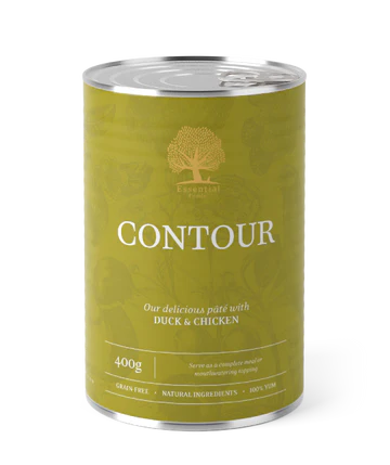 ESSENTIAL CONTOUR PÂTÉ er vores lækre paté med kødstykker af and og kylling tilpasset til hunde, der har en tendens til overvægt. Er ligeledes idéel til steriliserede/kastrerede hunde. CONTOUR PÂTÉ kan serveres som et fuldfoder måltid eller en velsmagende topping.
