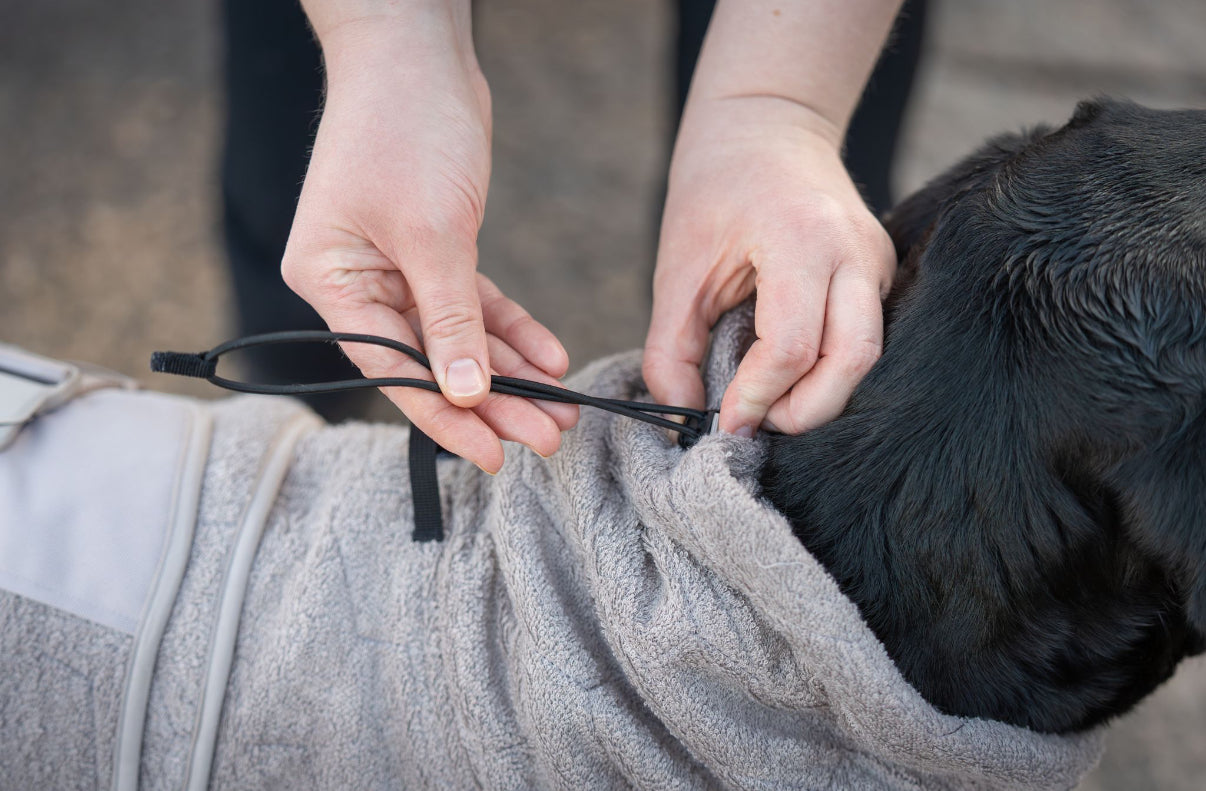 Drying coat er designet som en badekåpe for å tørke hunden din på halve tiden.