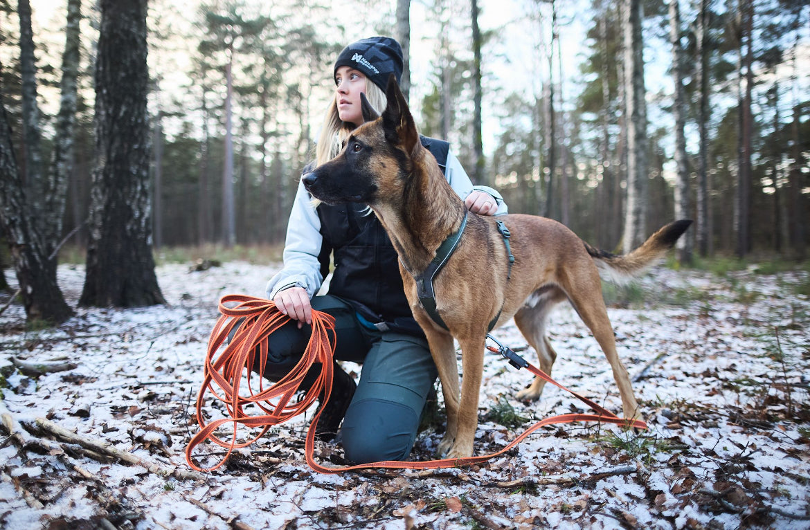 The Non-stop dogwear Friction long line has rubber inserts for excellent grip. Still, the line glides easily through the terrain when your dog is tracking.