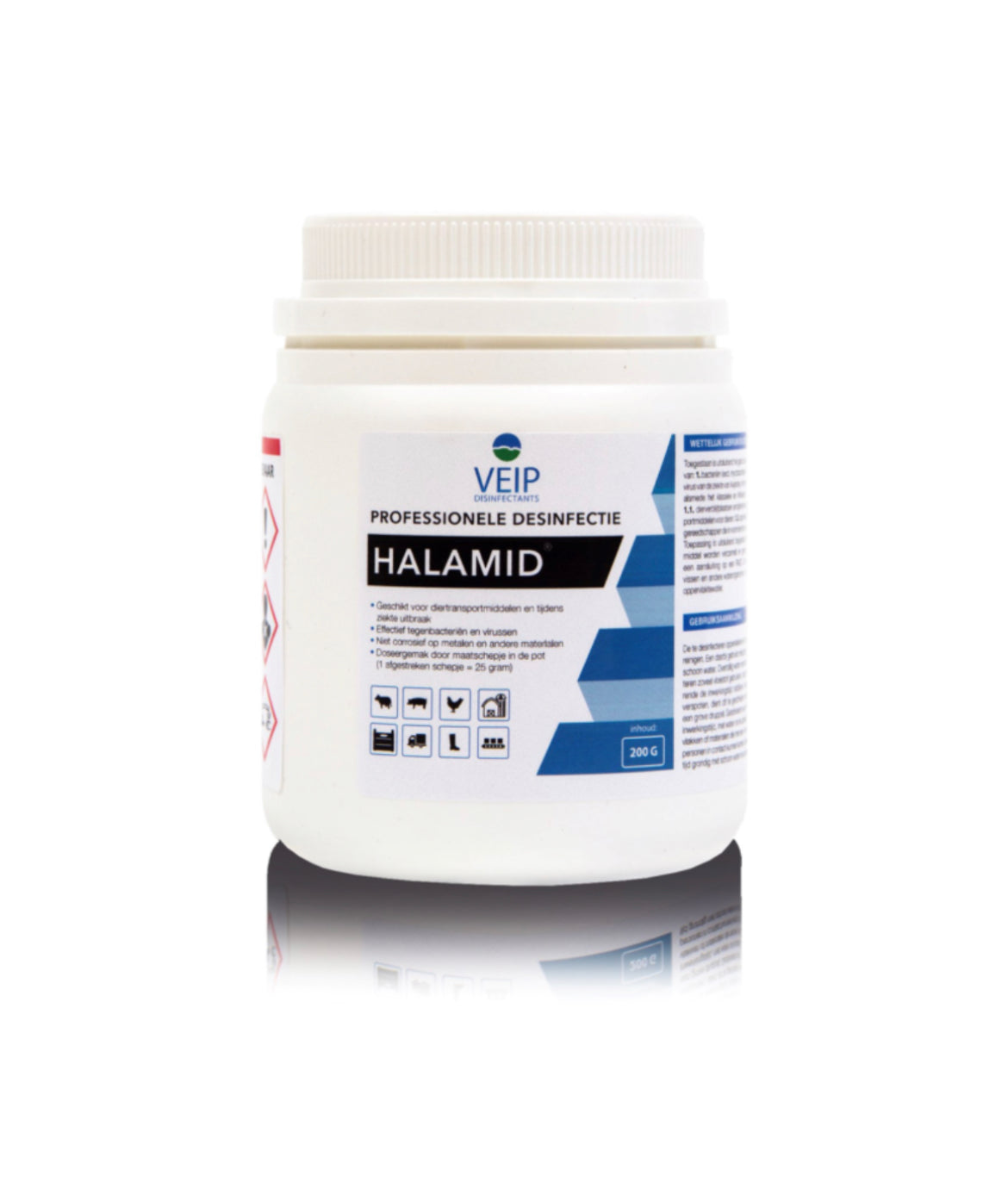 Halamid-d indeholder klor og ilt til effektiv rengøring. Produktet har en meget høj procentdel af stabile og aktive stoffer. Halamid-d forårsager en kemisk reaktion (oxidation, er faktisk en forbrændingsreaktion) på mikroorganismer, hvilket gør udviklingen af resistens umulig. Halamid-d er derfor effektiv til at dræbe bakterier, svampe og vira.