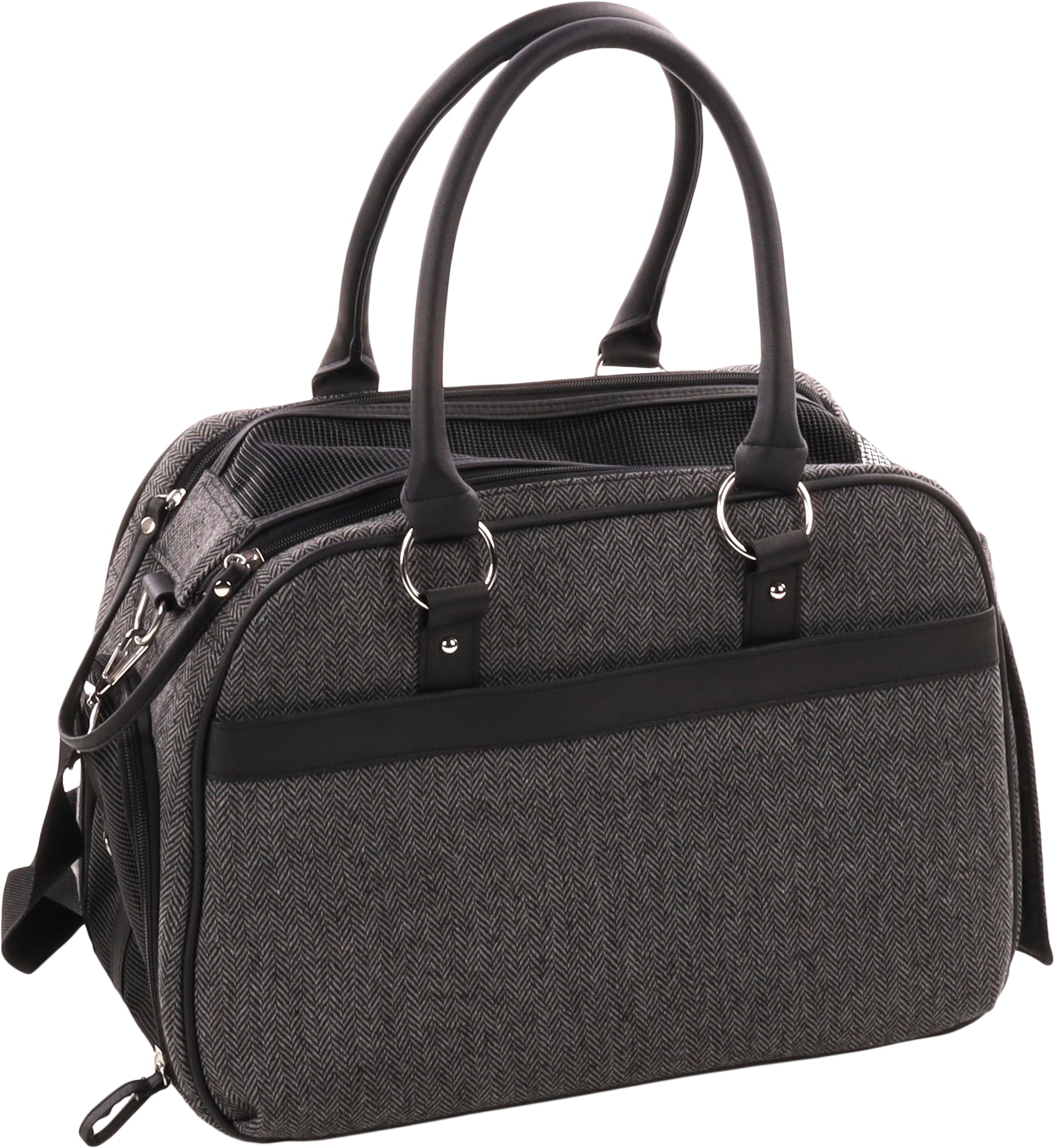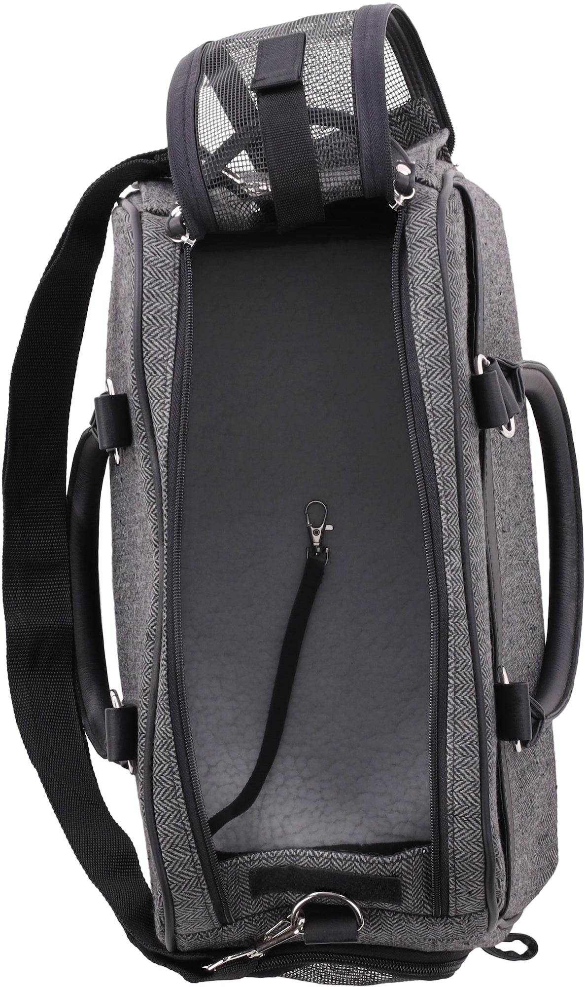 - Front and top zip openings with hook-and-loop fasterner