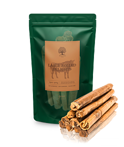 Turka oksahúð, sum er rulla til lekkrar tjúkkar tyggipinnar.