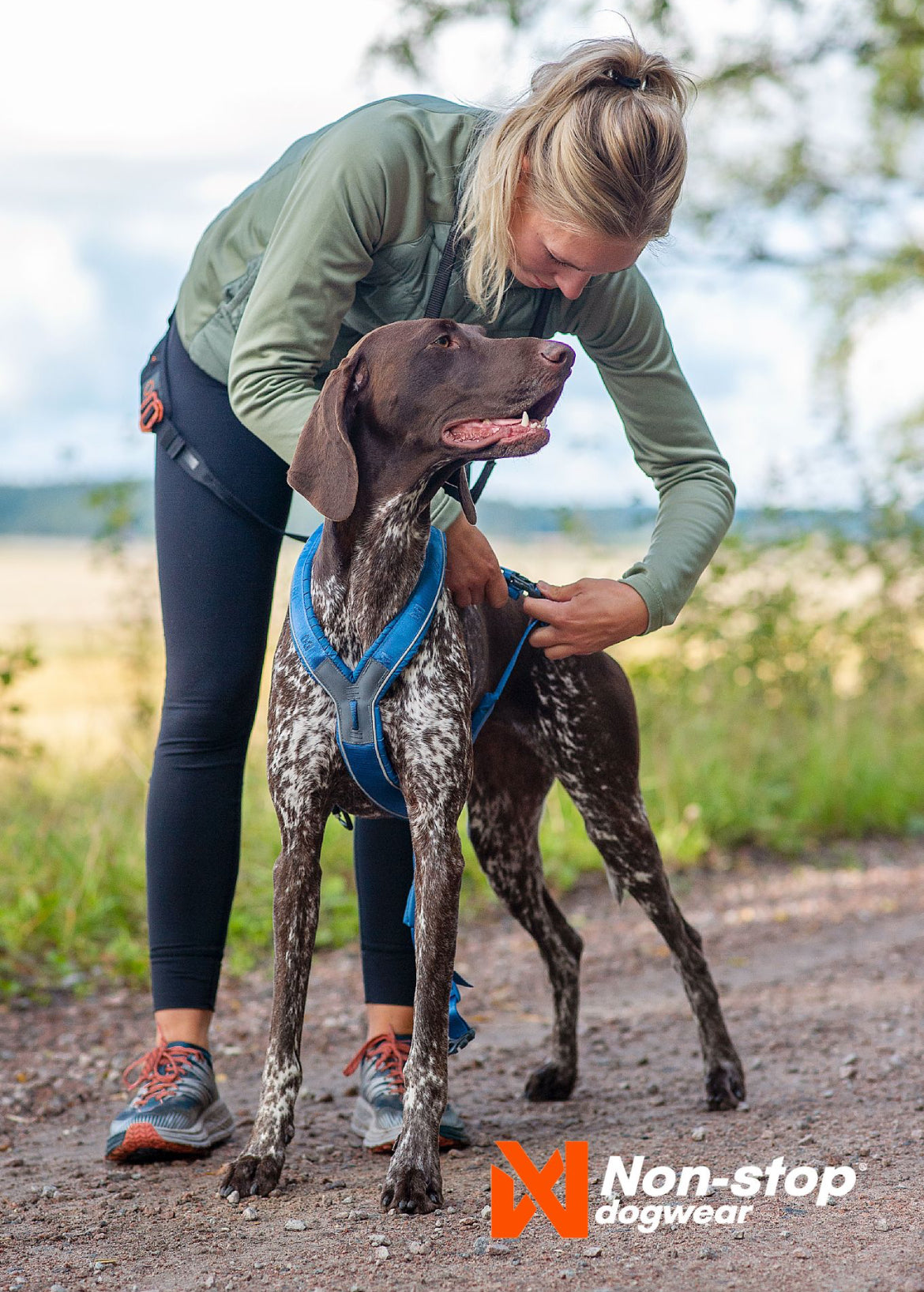 The Non-stop dogwear Line harness 5.0 is an ergonomic and versatile harness developed for hiking, tracking and everyday activities with your dog. It can also be used for canicross, bikejoring and skijoring for dogs that do not pull hard on the leash. The Y-shaped neck allows free shoulder movement and minimal breathing constraint.