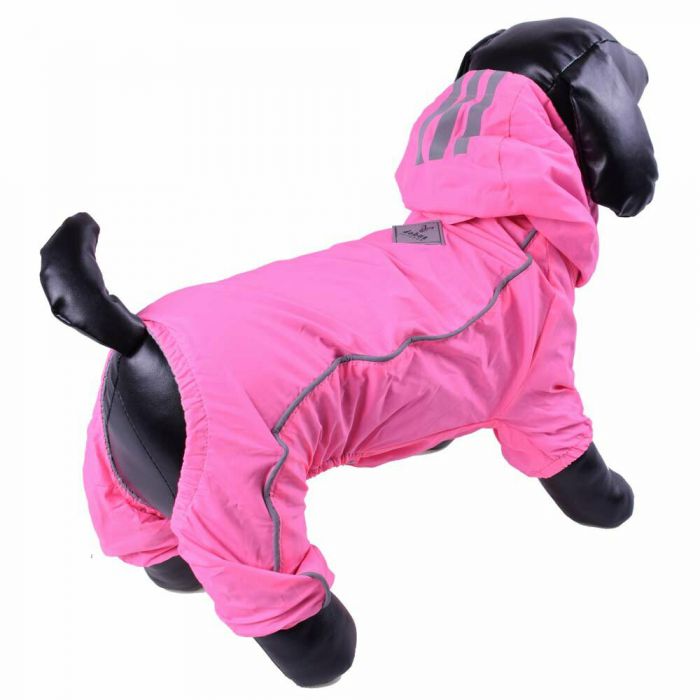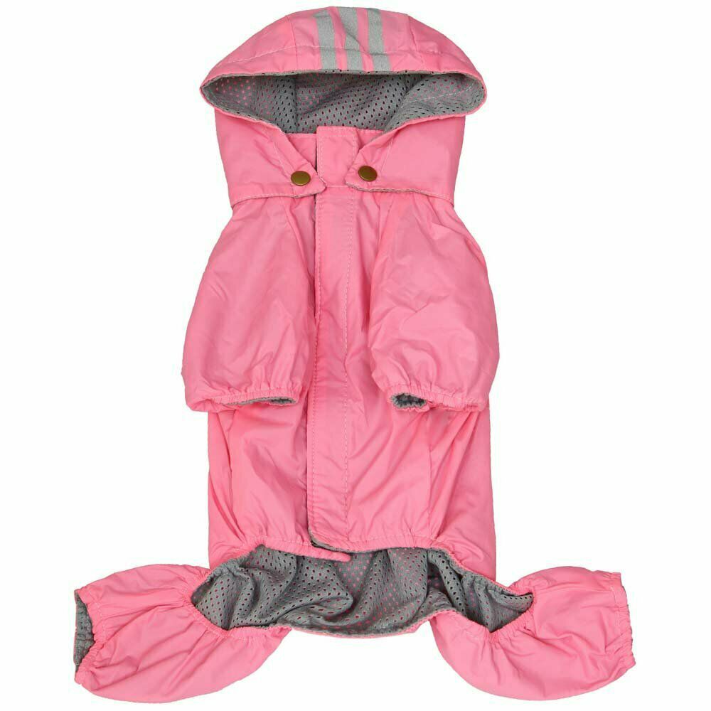 Regndrakt við fýra beinum og hettu, ið kann takast av.