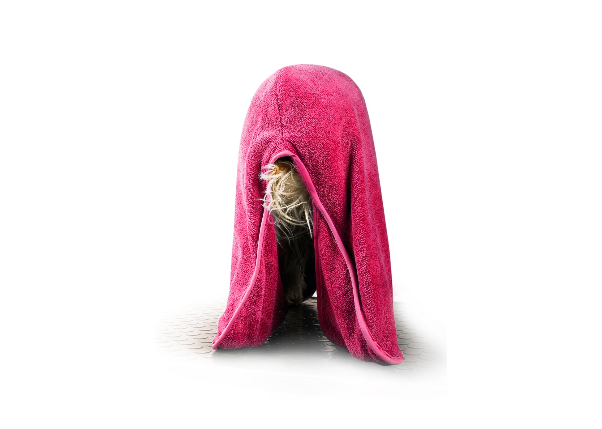 The new Dry Dude is a revolutionary aid for groomers and breeders. Made from high quality micro-fibre the Dry Dude has an elasticated neck band and is worn by the dog after bathing. The dog's feet fit into pockets which keep the dry dude in place. The highly absorbent micro-fibre soaks up the water from the dog's coat, thereby speeding up the drying process. Essential for busy grooming salons.