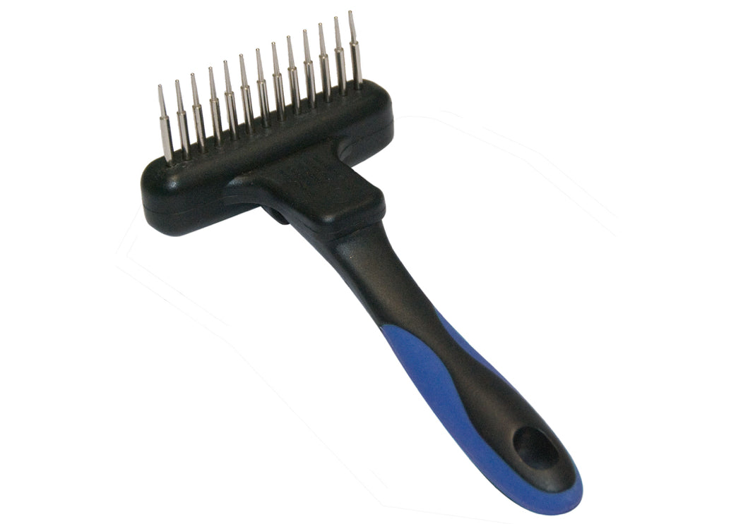 instructionsfor use: Comb in the direction of coat growth to remove fluffy undercoat. If the hair is matted, use the The Show Tech Twist & Cling rake in combination with a Mat buster de-matting tool. To prevent mats and tangles, the dog's coat should be regularly bathed, treated with a conditioner and brushed daily.