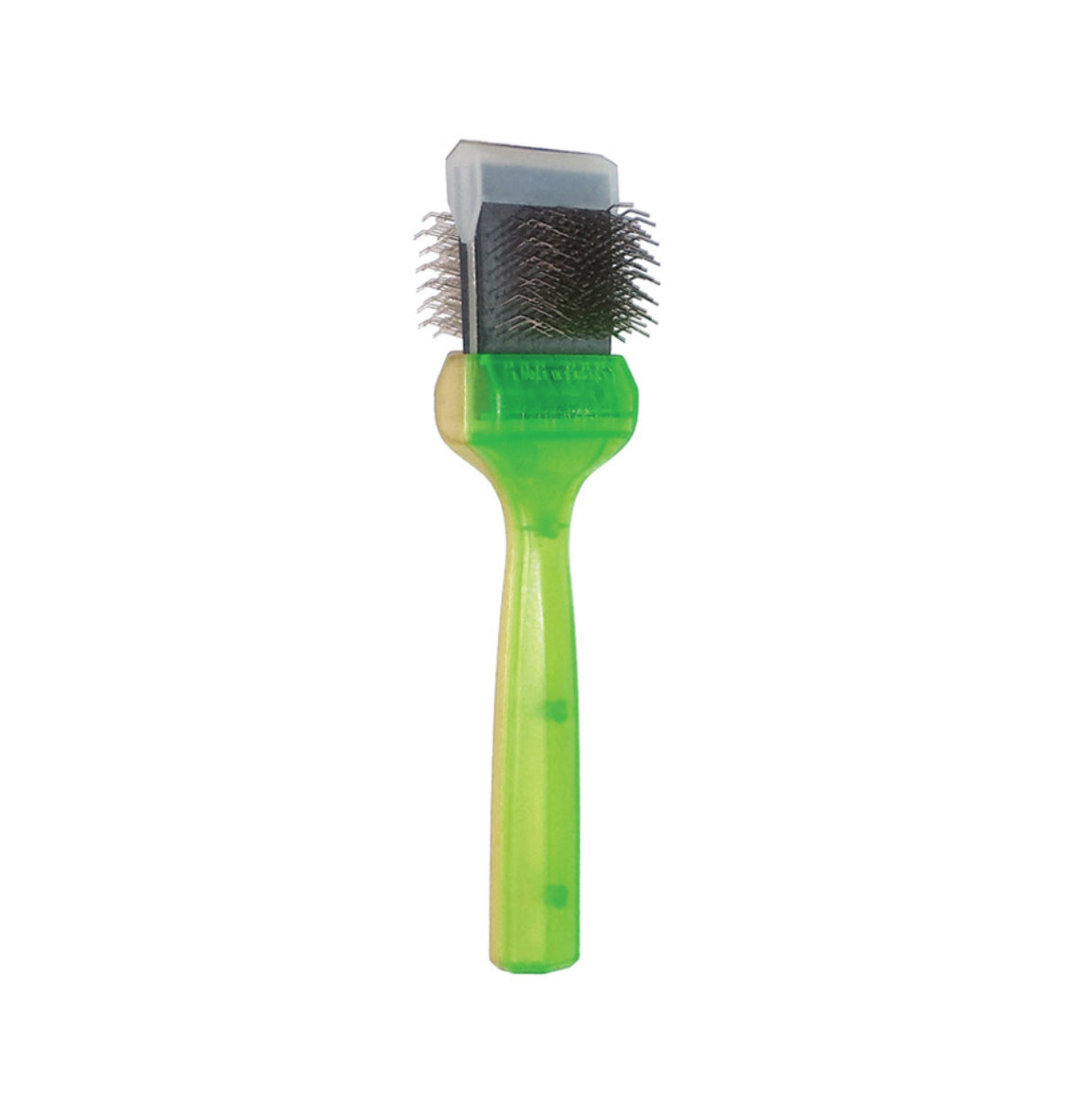 To meet the expectations of its customers, the ActiVet brand has created a sensational line of Duo brushes, thanks to which you receive two brushes in one! ActiVet DuoUnderCoater is a combination of two brushes that provide great results. The golden brush (ActiVet Pro Basic Super Soft Coat Grabber) was designed for combing breeds with long and silky hair. It will also work for breeds with short hair to collect loose hair. The other side is the Pro Brush Soft Green – soft, dedicated to breeds with little or no undercoat, for long and / or silky hair. Extremely versatile, perfect for everyday use and finishing a hairstyle. It is perfect for removing tangles and pilling, as well as for detangling and brushing out dead hair.