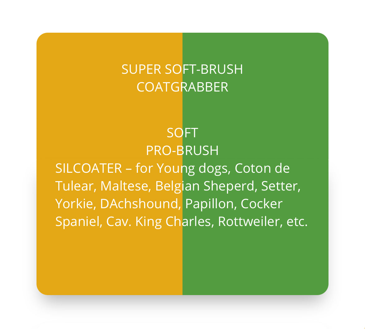 To meet the expectations of its customers, the ActiVet brand has created a sensational line of Duo brushes, thanks to which you receive two brushes in one! ActiVet DuoUnderCoater is a combination of two brushes that provide great results. The golden brush (ActiVet Pro Basic Super Soft Coat Grabber) was designed for combing breeds with long and silky hair. It will also work for breeds with short hair to collect loose hair. The other side is the Pro Brush Soft Green – soft, dedicated to breeds with little or no undercoat, for long and / or silky hair. Extremely versatile, perfect for everyday use and finishing a hairstyle. It is perfect for removing tangles and pilling, as well as for detangling and brushing out dead hair.