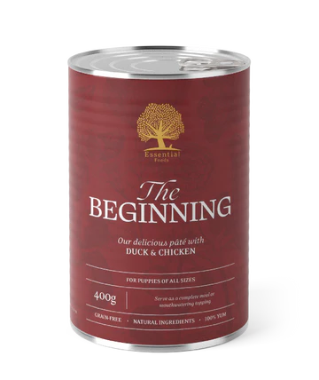 ESSENTIAL the BEGINNING PÂTÉ er vores lækre paté med kødstykker af and og kylling. Et fuldfoder måltid eller himmelsk topping for hvalpe af alle racer og størrelser. Hvis du har ledt efter noget, der kan skabe begejstring fra en ung alder, så er du kommet til det rette sted!
