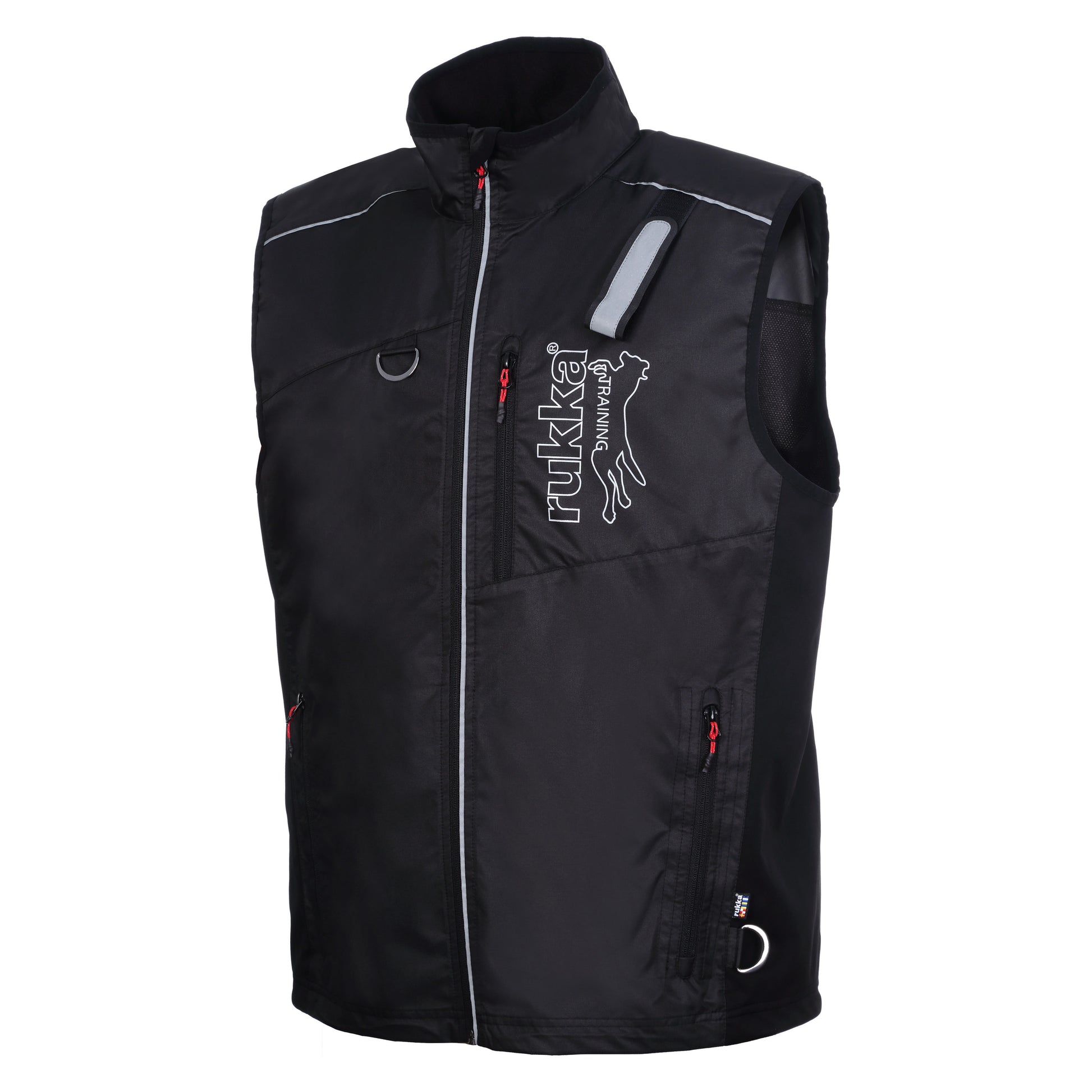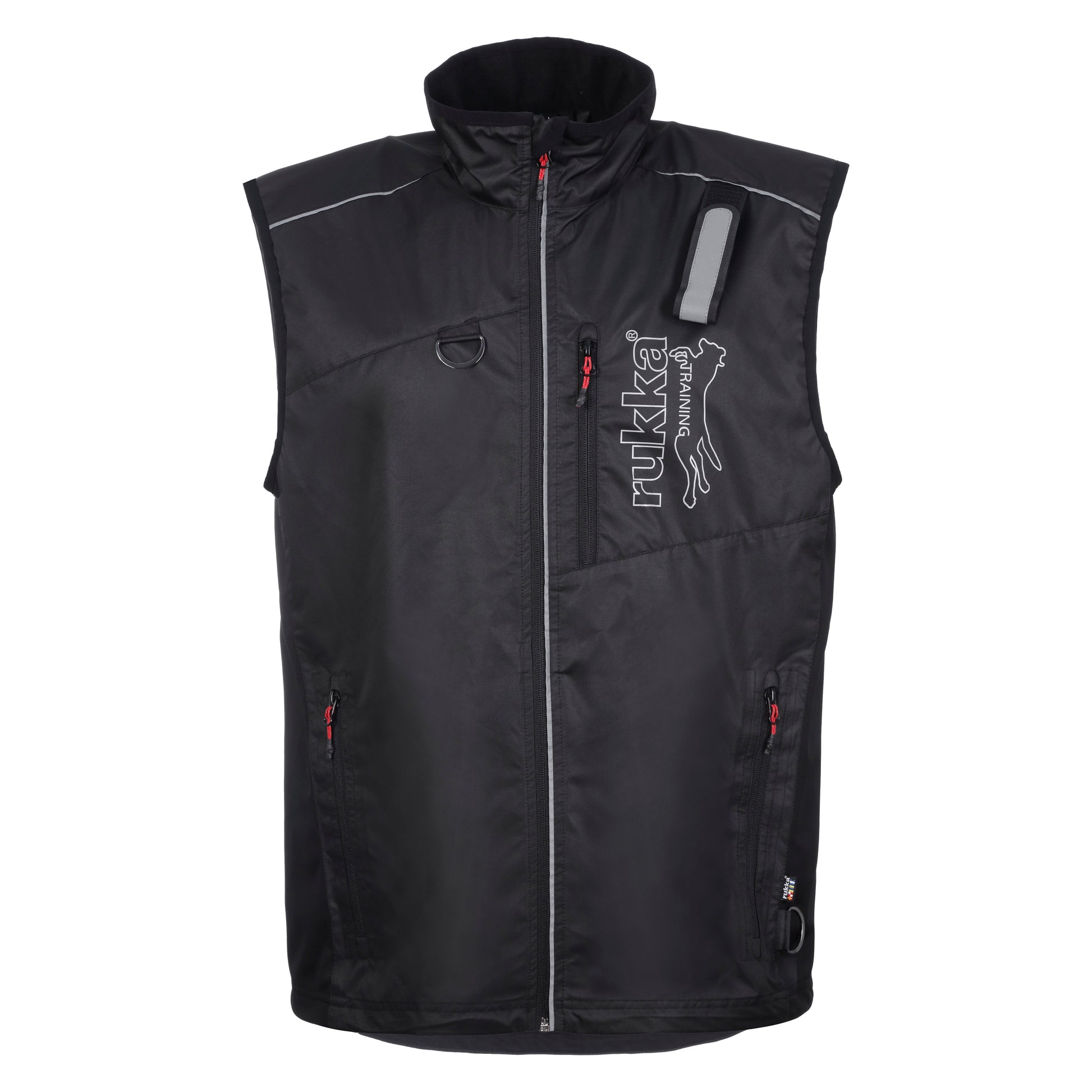 The vest made of durable and dirt-resistant material is a stylish and functional training vest for both amateur and professional use. The vest comes with several pockets and D-rings for you to put treats, training supplies and your own personal belongings in. There is a touch-fastener on the shoulder to attach the leash when not in use. As a special feature, the front pockets consist of detachable inner pouches, which you can take off for washing or for putting the treats in the fridge. The large back pocket comes with a zip closure. There is a stylish gunmetal finish on all metal parts. The vest has reflective piping and a large reflective logo.