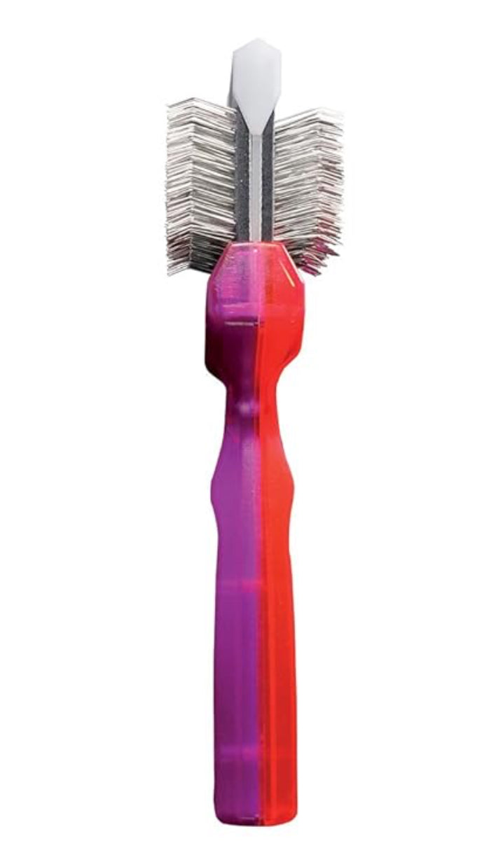 To meet the expectations of its customers, the ActiVet brand has created a sensational line of Duo brushes, thanks to which you receive two brushes in one! ActiVet Duo Tuffzapper Coater is a combination of two hard brushes that provide great results. The lilac brush (ActiVet Pro Brush Firm Lila) is dedicated to breeds with a thick, double, woolly coat and with an undercoat. Extremely versatile, perfect for many breeds for everyday use. It is perfect for removing all tangles, tufts and pilling, as well as for detangling and brushing out dead hair. The other side is the ProMat Zapper brush – the hardest of all ActVet brushes. Dedicated to fight even extremely tangled robes, it will be perfect for removing all tangles. Always use it for initial detangling.